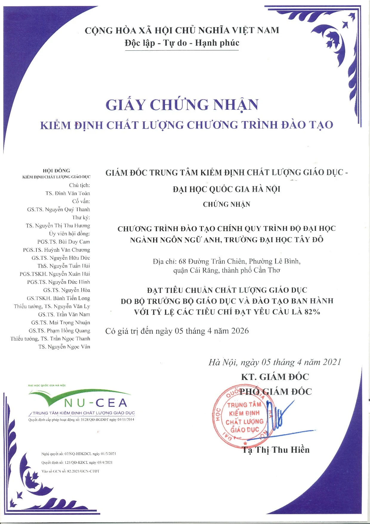 The English Language program at Tay Do University trains students to communicate fluently, think critically, and adapt to the global environment through practical projects, festivals, and the English Club. After graduation, bachelors have diverse job opportunities such as teaching, translation-interpretation, tour guides, or working in the fields of commerce, communications, and international organizations.